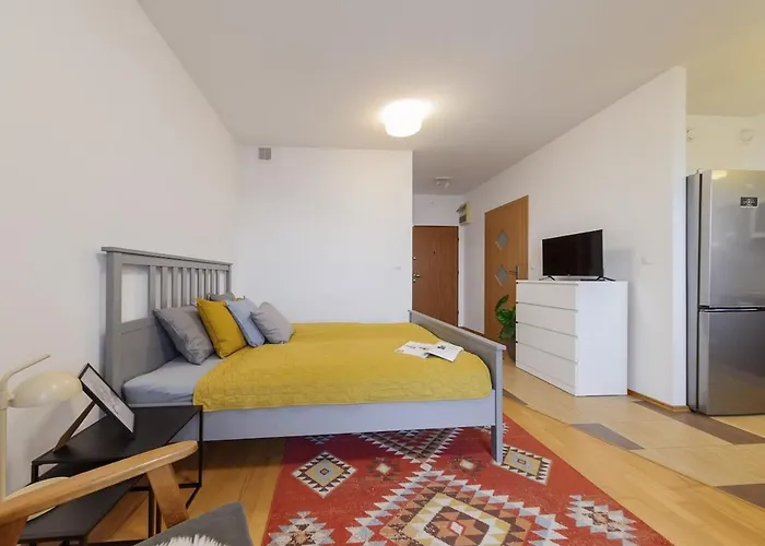 The 35 m² Etno Chic Studio Ursynow Warsaw is 19 minutes' walk from Ursynow Arena. The apartment boasts a terrace and complimentary private parking on site.